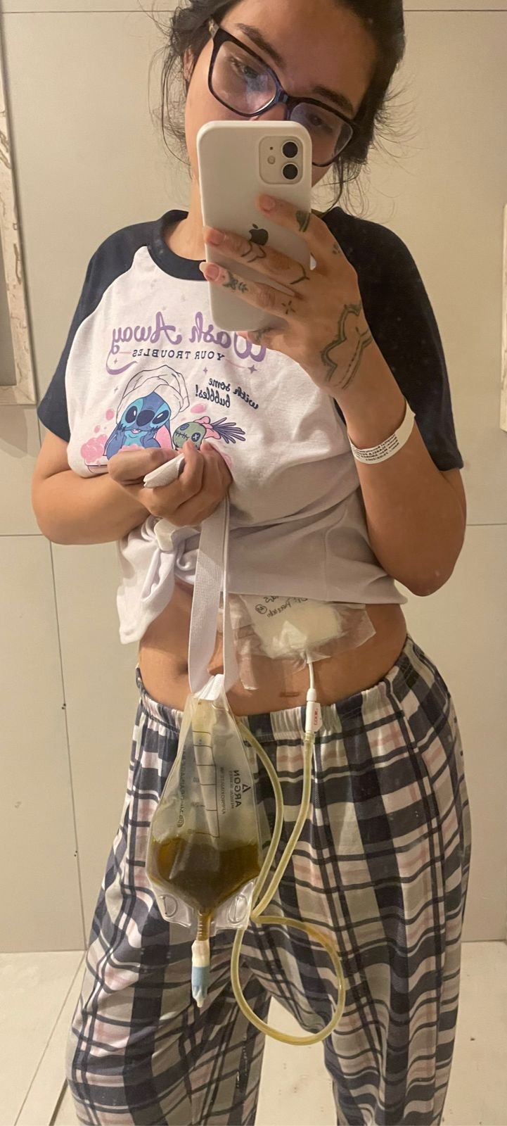 Isabela está com um dreno biliar, que gerou diversas complicações, além de dores constantes, que a impedem de levar uma vida normal.